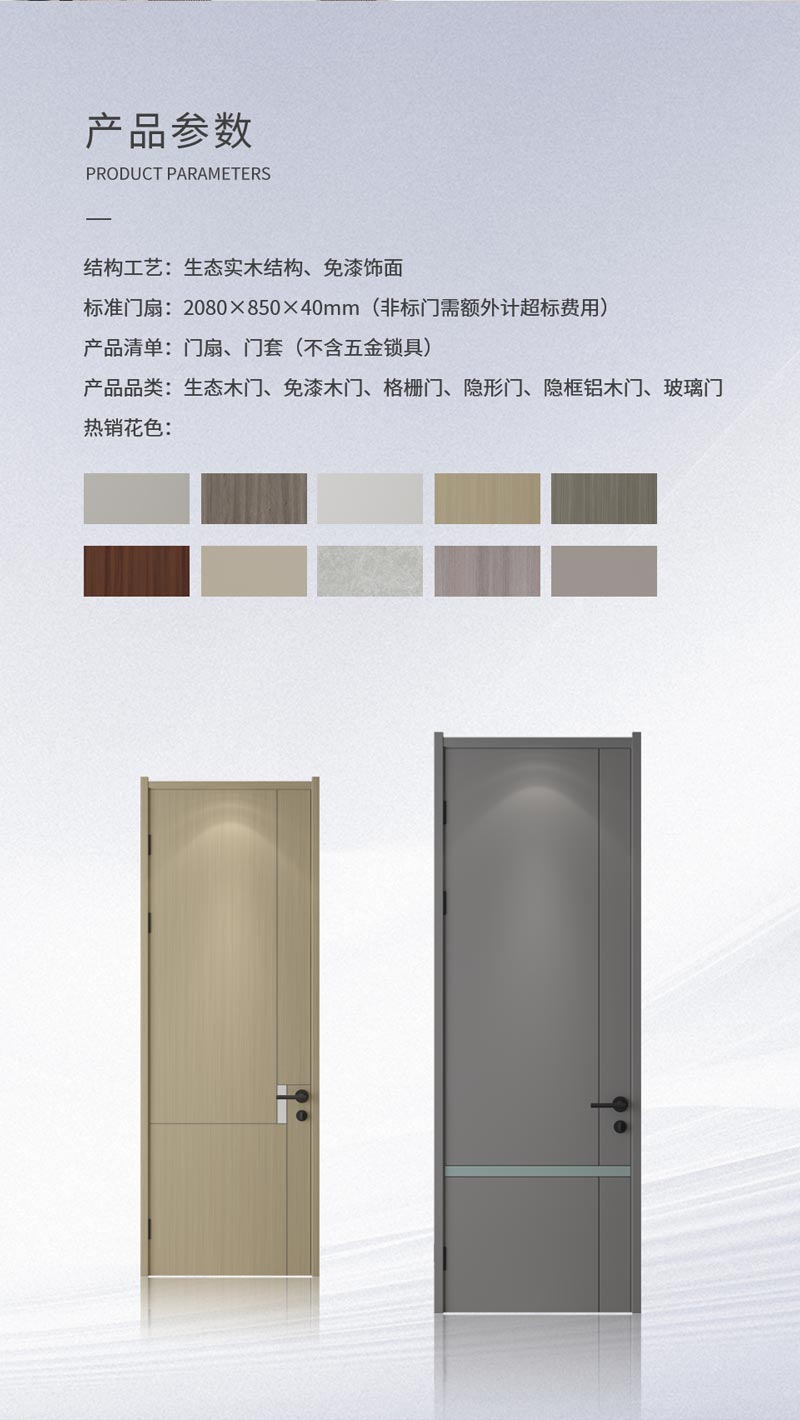 產(chǎn)品品類:生態(tài)木門、免漆木門、格柵門、隱形門、隱框鋁木門、玻璃門