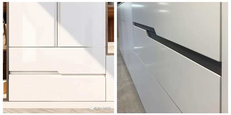 45°角的內(nèi)向斜切,25mm槽寬,隱形的凹槽式拉手化有形于無(wú)形,符合人體工程學(xué),保證每次柜門(mén)開(kāi)合時(shí)的舒適手感。