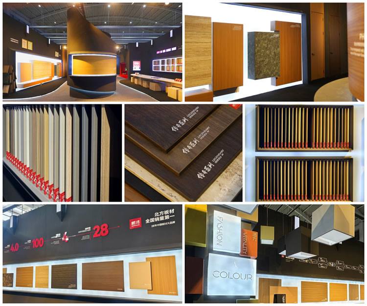 現(xiàn)場高達2.75米的環(huán)抱式立體展陳設計,全方位呈現(xiàn)板材細節(jié),每一款板材均完美詮釋顏值與健康并存的理念。
