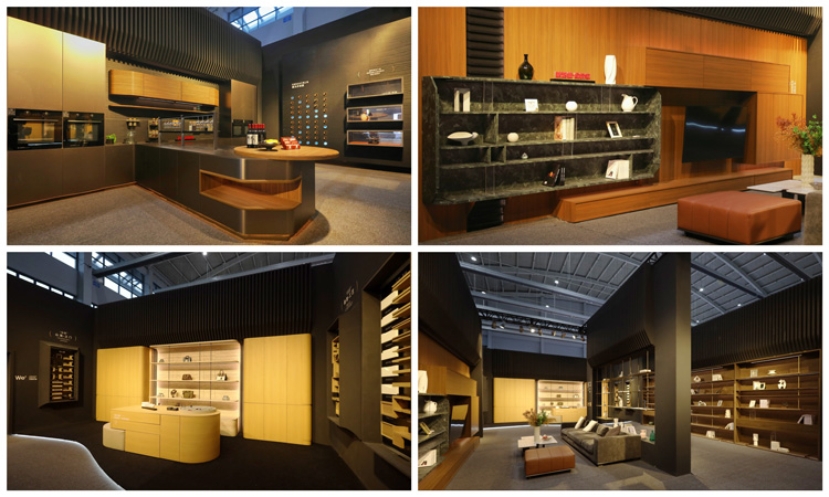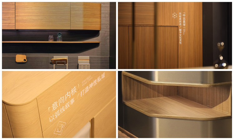 45度斜切結(jié)構(gòu)、骨骼線條、弧形元素、ABA板材工藝……多元美學(xué)融合,呈現(xiàn)全新家居意境。應(yīng)用上,ENF級環(huán)保,4.5米通頂家居,傳奇系列板材、第三代顆粒板、碳晶飾面板……為與會(huì)觀眾帶來高顏值、高個(gè)性化、高品質(zhì)的整家美學(xué)方案。