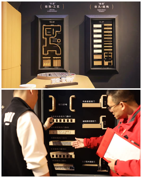 作為此次展會(huì)的"現(xiàn)象級"展品,鵬鴻工法墻以模塊化系統(tǒng)思維,通過"解構(gòu)式"陳列,將工藝系統(tǒng)、木門系統(tǒng)與護(hù)墻系統(tǒng)整合,58個(gè)工藝模塊覆蓋結(jié)構(gòu)、裝飾與功能三大維度,清晰呈現(xiàn)全屋定制的工藝系統(tǒng)。